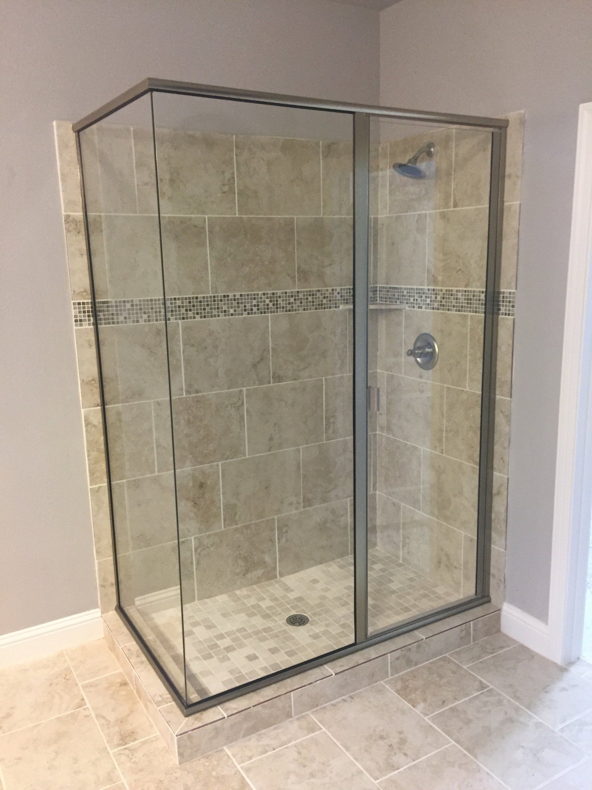 If your budget doesn't allow for a fully frameless shower door, consider an economical semi-frameless shower door from United Mirror and Glass, LLP. These doors have a minimal presence of metal and come in a standard coastal 3/16" shower door size.